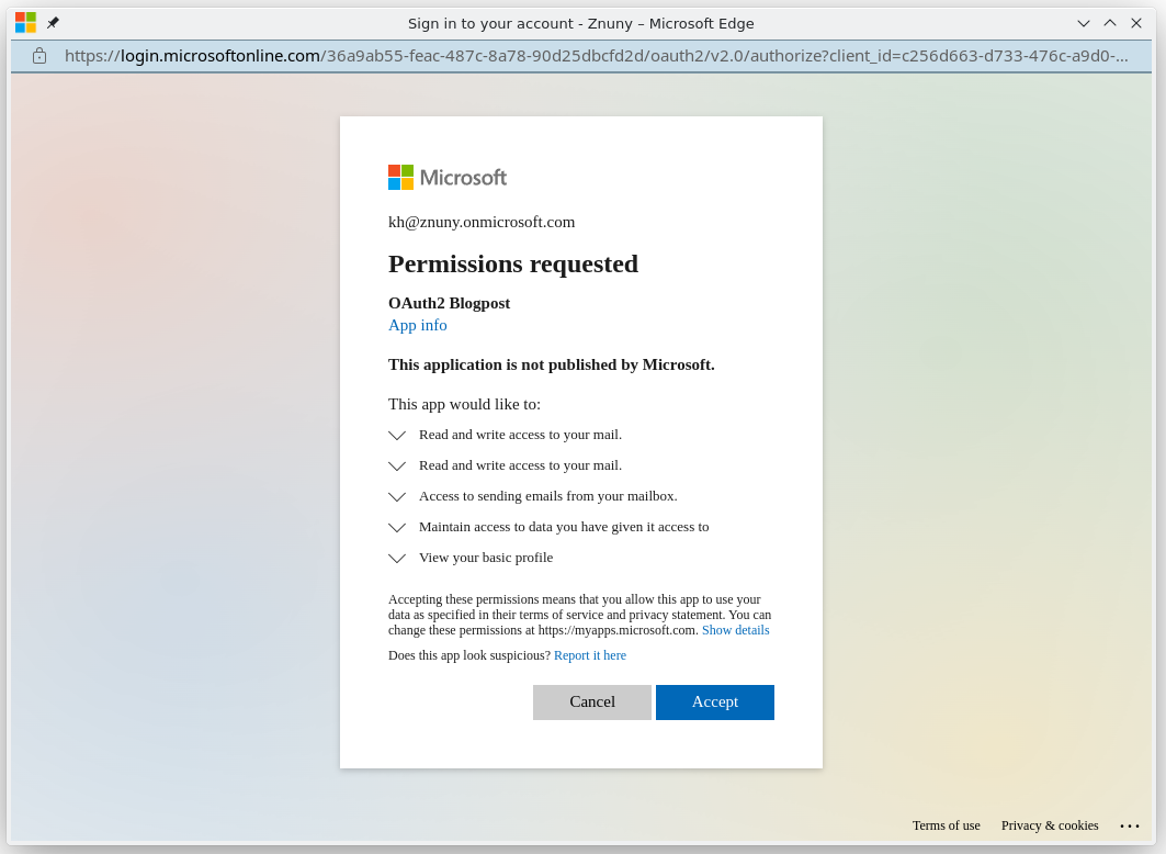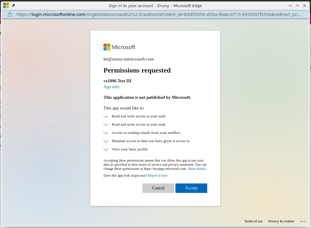 Copy & paste on this site OAuth 2.0 authorization endpoint (v2) (Znuny field URL for authorization code) and OAuth 2.0 token endpoint (v2) (Znuny fields URL for token by authorization code and URL for token by refresh token).
